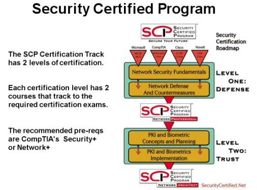 Attack Methods, and Internet Security. The Security Certified Network Architect (SCNA) program is about trust, focusing on Cryptography, Biometrics, PKI Concepts, PKI Planning, PKI Implementation, HIPAA, Security Response, Smart Cards, Legal and Physical Security Issues, and Network Forensics.